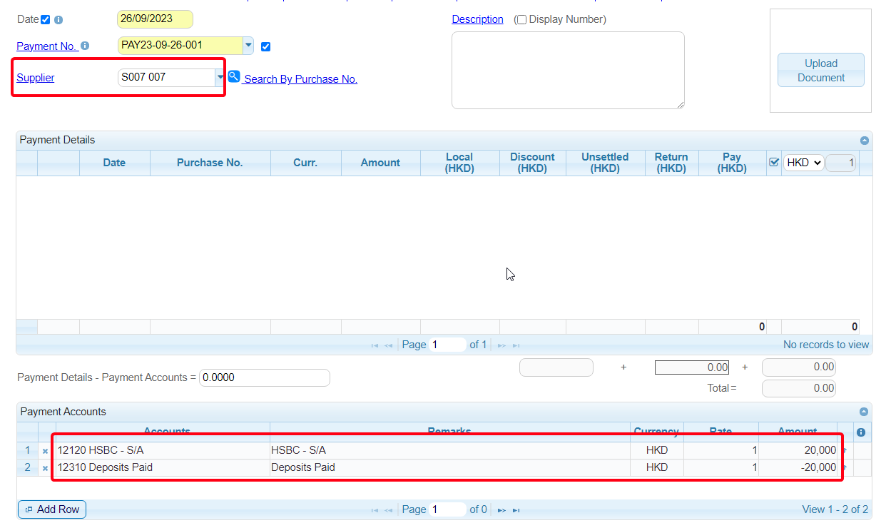 1. 支付的按金並無與任何採購直接掛勾,是你預先給供應商的一筆按金,當後向供應商採購產品的時候,便在這筆款項扣除。這種情況請參考第1至2步。